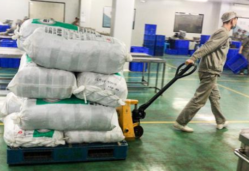 藥廠使用手動液壓搬運車轉運藥材為抗疫做貢獻