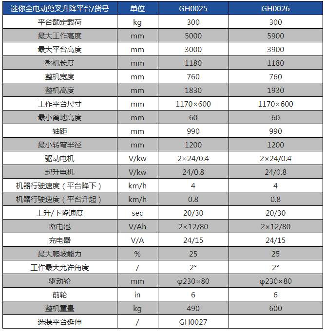 冠航牌迷你全電動剪叉式高空作業平臺
